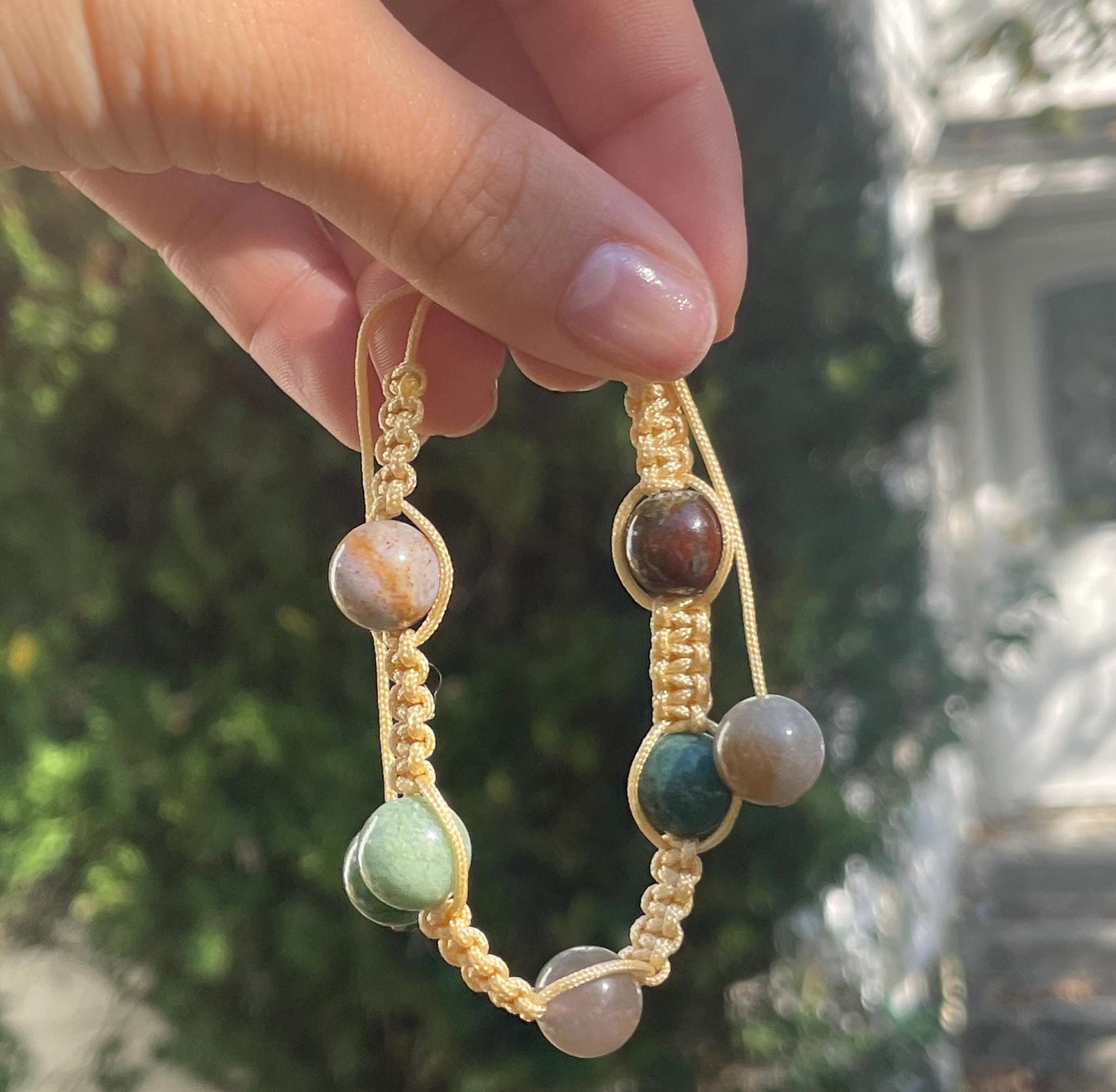 **Adjustable Shamballa-Style Jasper Bead Bracelet – 10mm Beads** Embrace the natural beauty and grounding energy of **jasper** with this adjustable Shamballa-style bracelet, featuring **10mm jasper beads** hand-braided with durable **beige 1mm nylon string**. Jasper, known as the "supreme nurturer," is a powerful stone believed to provide emotional balance, grounding, and protection. It promotes stability, strength, and peace, making it a perfect companion for those seeking a deeper sense of calm and resilience in their daily lives. The adjustable Shamballa-style closure allows you to easily customize the fit, offering both comfort and style. With its earthy tones and versatile design, this bracelet is an excellent addition to any outfit—whether you're wearing it for its spiritual benefits or as a fashionable accessory.