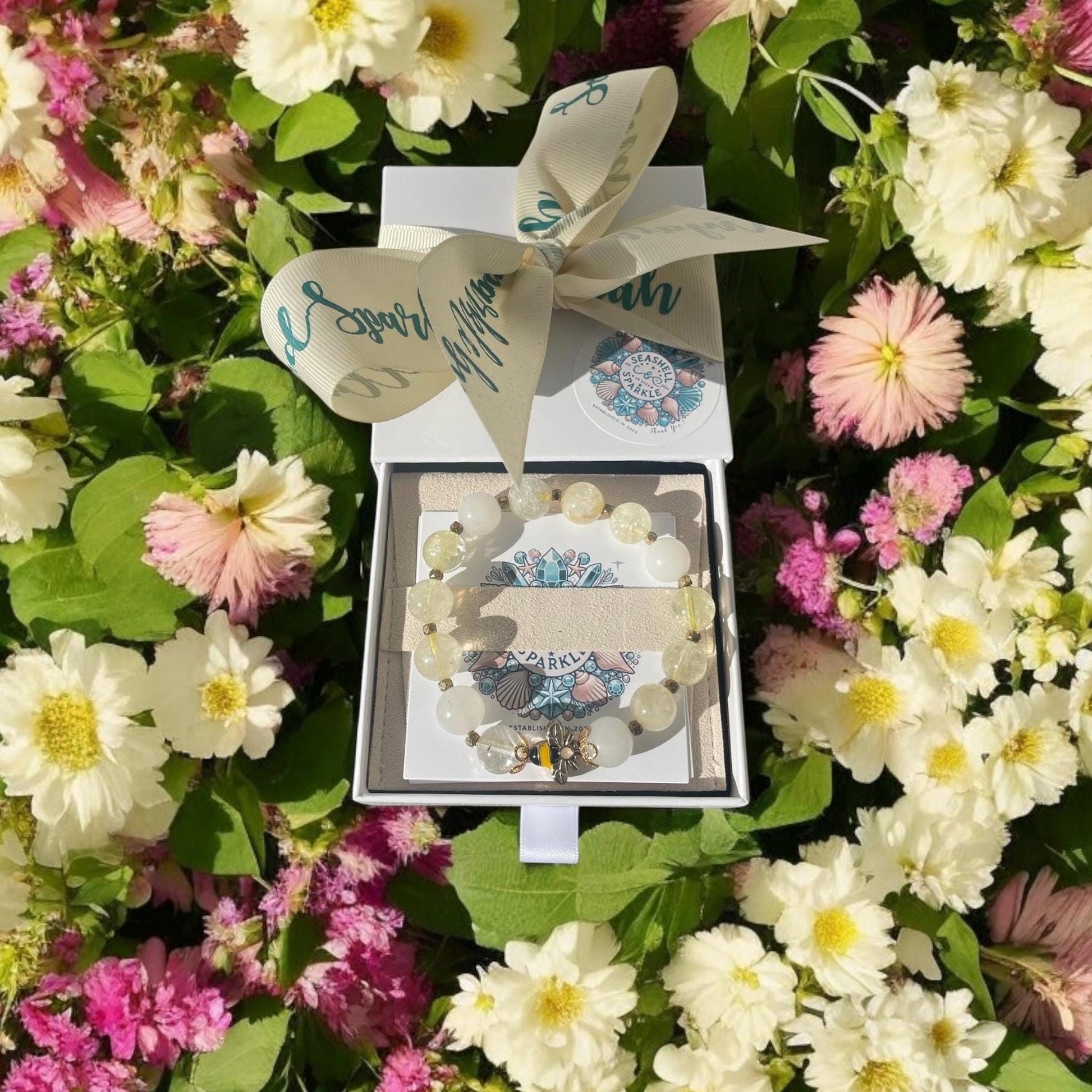Embrace the blend of creativity and abundance with our Opal and Citrine Beaded Bracelet. This unique piece features genuine Opal beads, known for their soothing energy that enhances intuition and emotional balance, paired with radiant Citrine beads, celebrated as the "Stone of Success" for their ability to attract wealth, positivity, and motivation. A delicate bee charm adds a touch of charm and symbolism, representing community, productivity, and sweet rewards. This bracelet is more than just an accessory—it's a powerful talisman designed to inspire growth, attract prosperity, and encourage a balanced, joyful spirit. Wear this handmade bracelet to bring harmony, confidence, and success into your everyday life or gift it to a loved one as a meaningful gesture of positivity and well-being. Each bracelet is made to order.