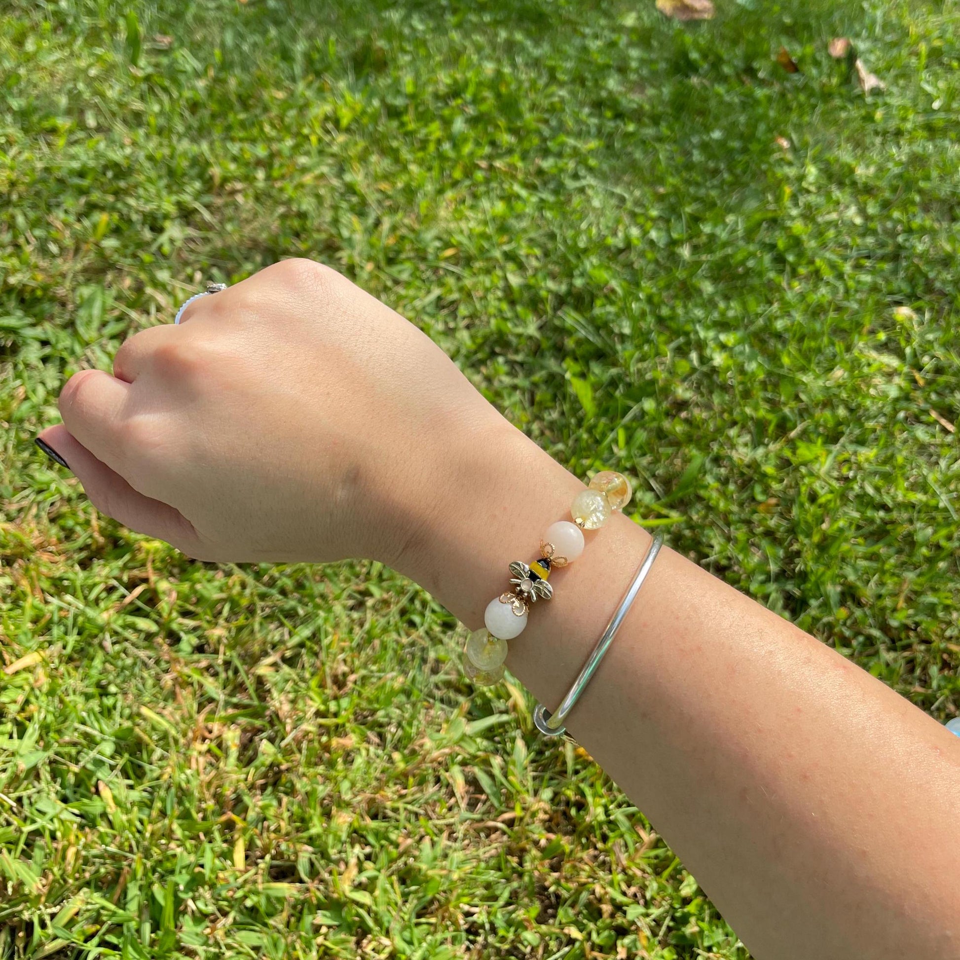 Citrine and Opal Bee Bracelet - Natural 10 mm Gemstone Bracelet