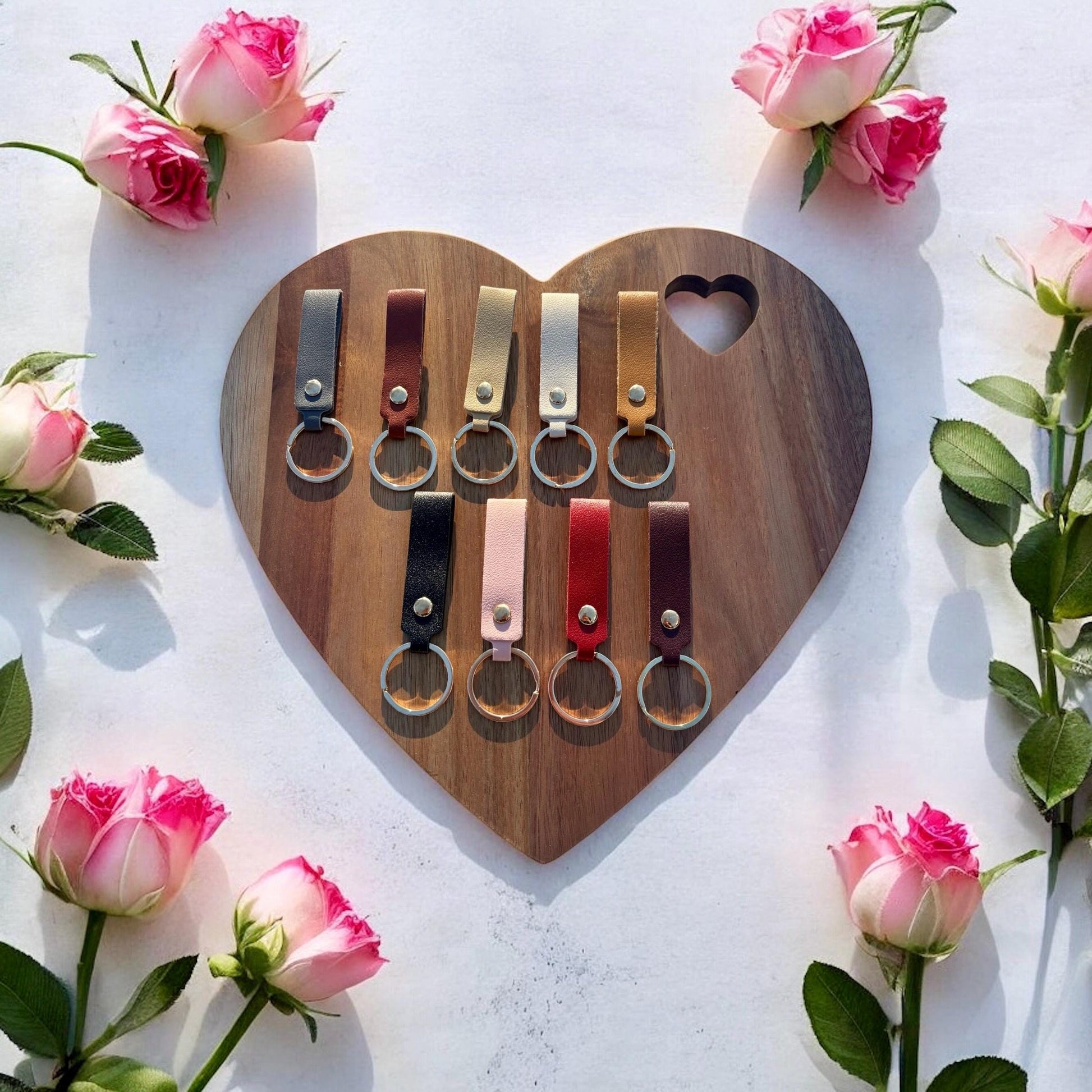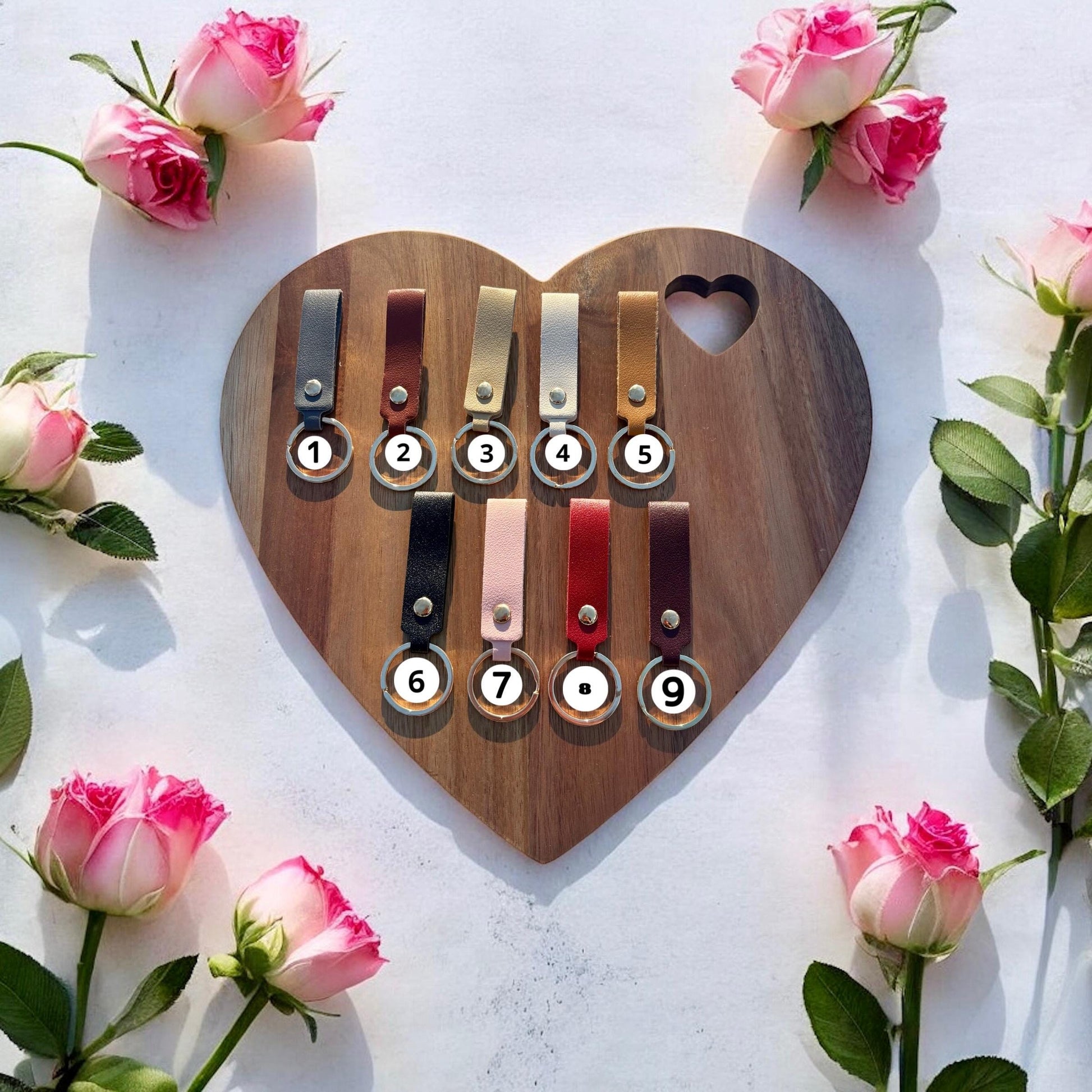 • Faux Leather Keychain Strap: 3.7 inches long x 0.67 inches wide, available in 9 colors.