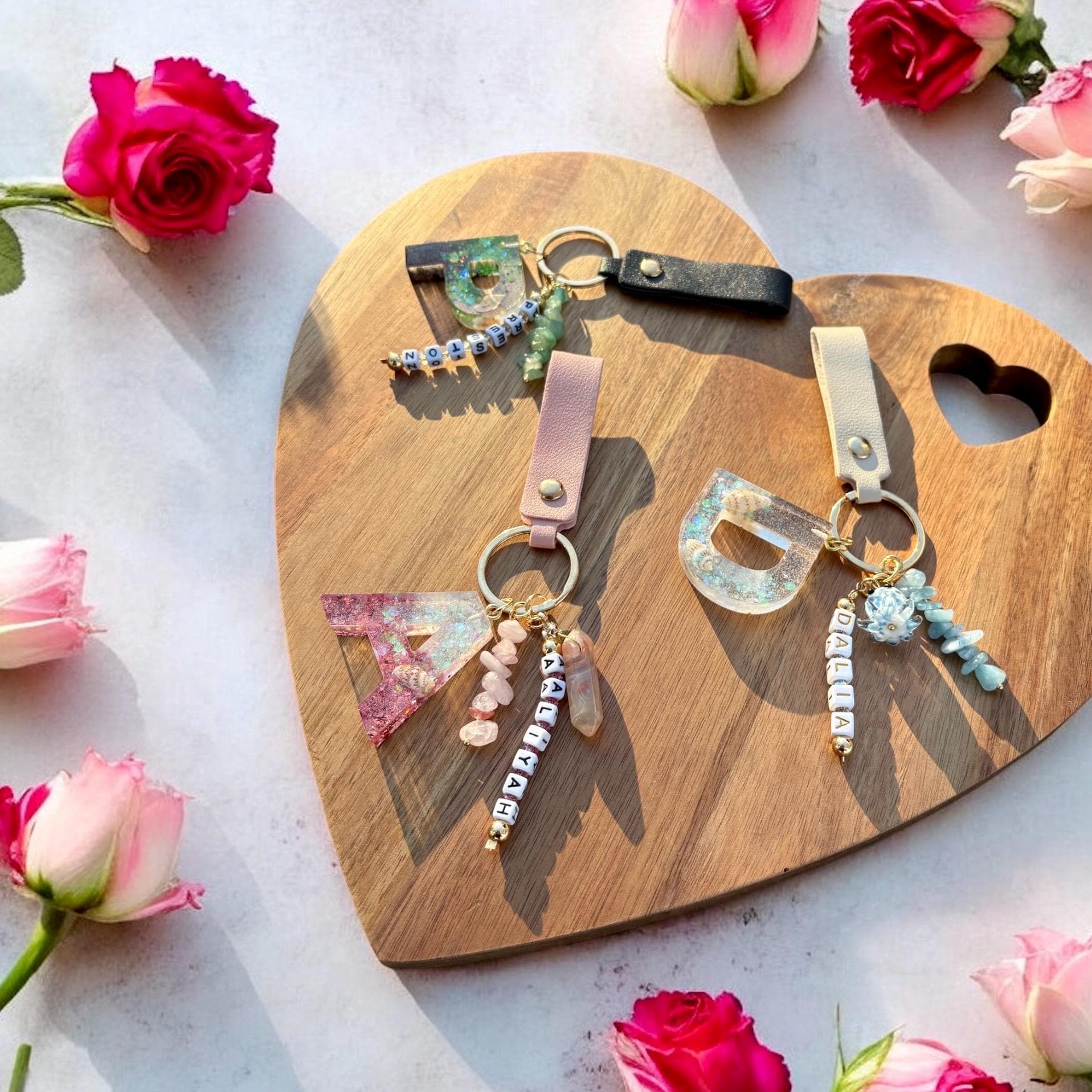 • Option to add an additional charm Perfect as a personalized gift, bag charm, or everyday keychain, this handcrafted piece combines glamour and sentimentality, making it a standout accessory.
